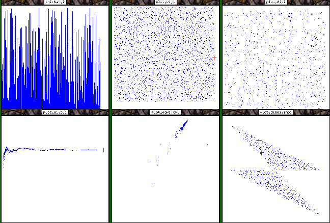 You can easily see the differences between the random generators. The drand algorithm generates good values. There are problems with the others.